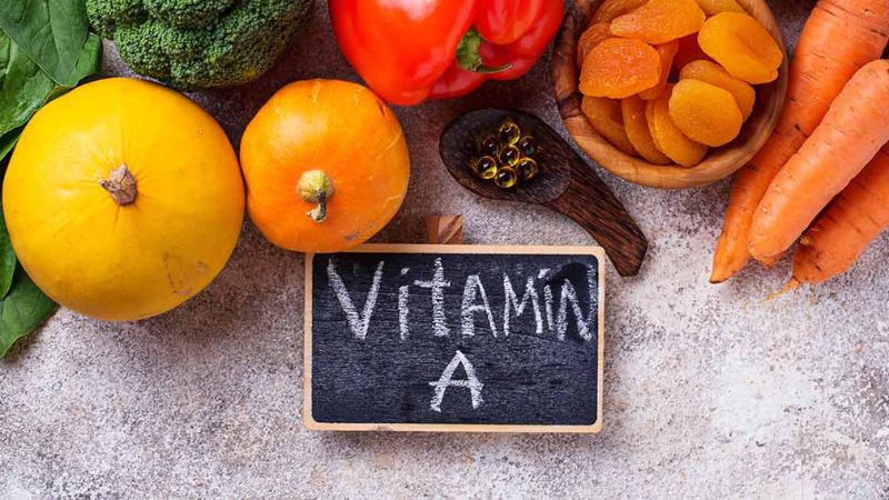Thiếu Vitamin A thường là nguyên nhân hàng đầu gây khô mắt khi nói đến tình trạng thiếu vitamin vì nó rất quan trọng để duy trì thị lực khỏe mạnh. Vitamin A tạo ra nước mắt, bôi trơn mắt và hỗ trợ giác mạc bằng cách cải thiện độ mịn của màng nước mắt. Sự mất cân bằng của nước, chất nhầy hoặc dầu có thể khiến mắt không được phủ đúng cách. Thiếu vitamin A cản trở quá trình sản xuất nước mắt, có thể dẫn đến khô mắt nghiêm trọng và thậm chí là quáng gà hoặc các bệnh về mắt nghiêm trọng hơn nếu không được điều trị. Thực phẩm giàu vitamin A bao gồm cà rốt, khoai lang, bí ngô, cà chua, xoài và rau lá xanh đậm. Bạn cũng có thể dùng viên uống bổ sung Vitamin A, nhưng cố gắng tránh dùng quá 10.000 IU trong một ngày để tránh ngộ độc, có thể gây buồn nôn, đau đầu, kích ứng da và đau khớp.
