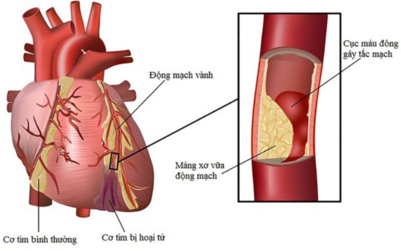 - Bệnh động mạch vành: cơn đau thắt ngực, nhồi máu cơ tim cấp.