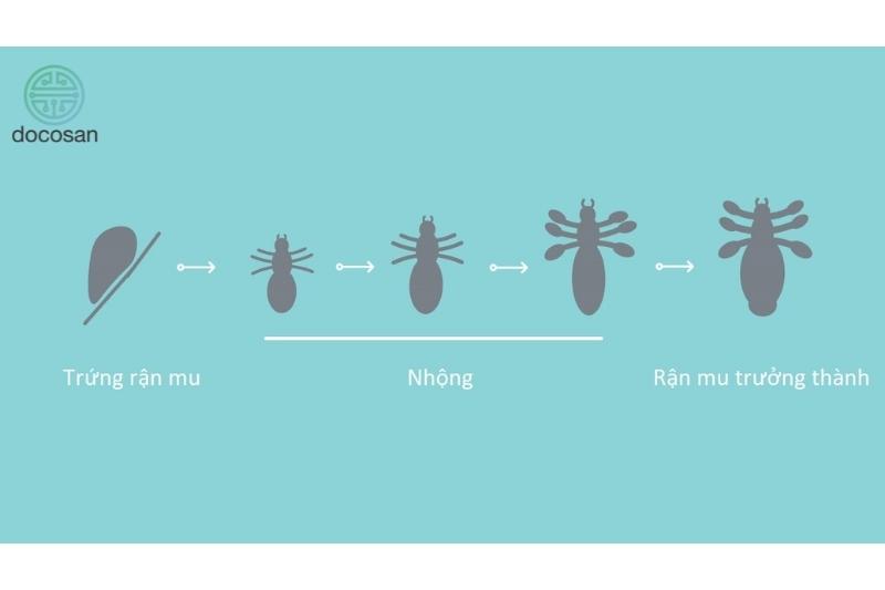 Rận mu có ba dạng phát triển: trứng, ấu trùng và trưởng thành.
