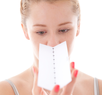Với cách thức tương tự như bài tập chuỗi Brock, thẻ chấm là một miếng bìa cứng được vẽ lên đó những chấm tròn thẳng hàng, cách nhau khoãng 1 cm. Đặt thẻ chấm dọc theo trục của mũi, hướng hơi nghiêng xuống dưới và bắt đầu nhìn từ điểm xa nhất đến điểm gần nhất tuần tự lặp đi lặp lại 5 lần mỗi khi thực hiện, mỗi ngày tập tối thiểu 3 lần. Yêu cầu của bài tập tương tự như chuỗi Brock.