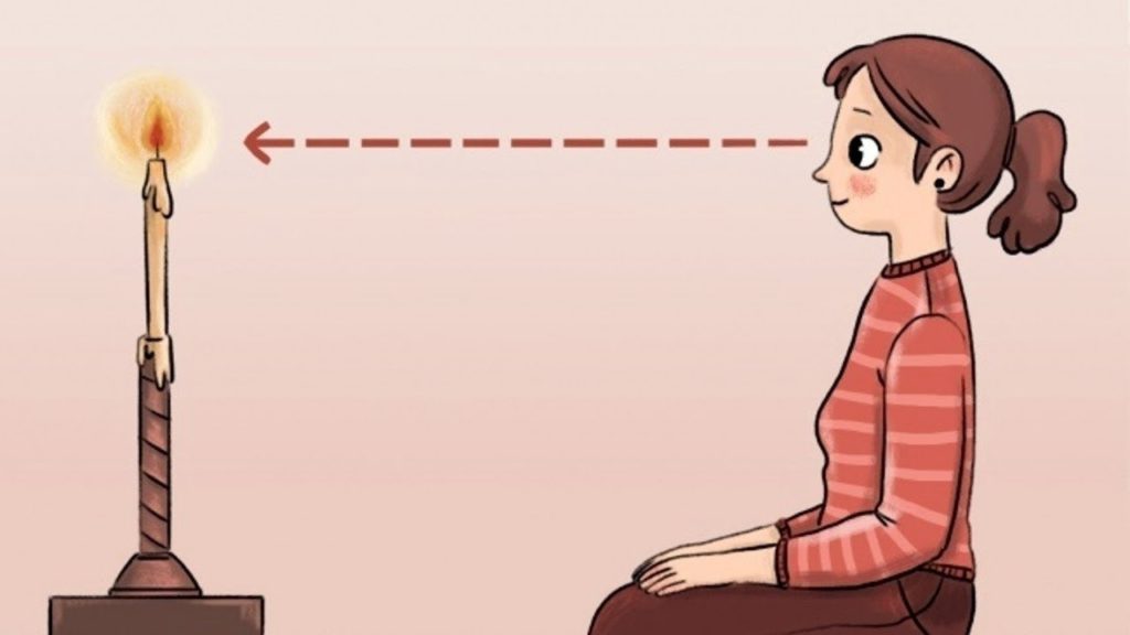 - Giữ cây bút chì trước mặt với khoãng cách bằng cánh tay của bản thân.