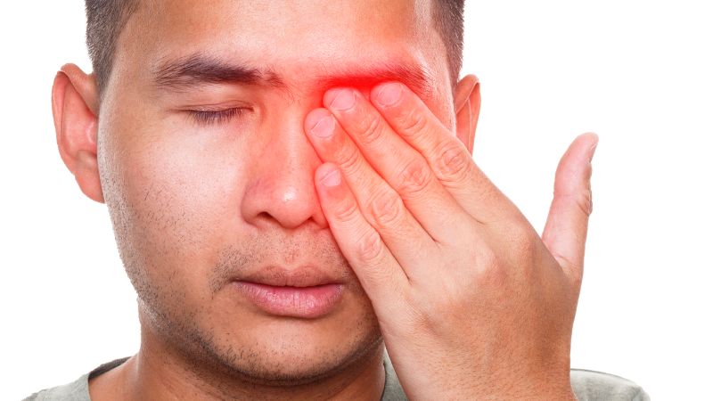 Đau/Khó chịu: Nhức đầu, đau/mỏi/rát/khô/đỏ mắt, nhạy cảm ánh sáng, chói mắt.