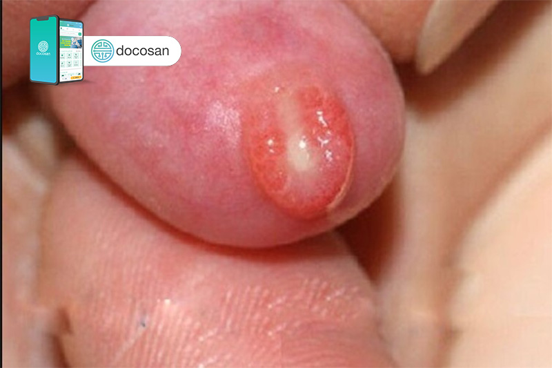 - Ở trên lớp da quy đầu xuất hiện các chấm nhỏ li ti như giọt nước, chảy dịch khi chạm vào. Đôi khi xuất hiện các tụ mủ ở trên bao quy đầu.