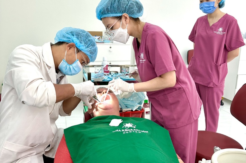 - Bước 2 – Gây tê: Trước khi bắt đầu quá trình điều trị, bác sĩ sẽ sử dụng thuốc gây tê để làm tê liệt khu vực xung quanh răng và tủy răng cửa. Điều này giúp ngăn ngừa đau và làm cho quá trình trở nên thoải mái hơn cho bệnh nhân.