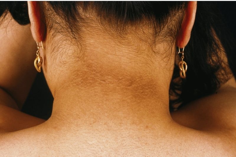 Vùng da sẫm màu ở nách, cổ, bẹn là một dấu hiệu phổ biến của tiền tiểu đường, gọi là dấu gai đen . Tình trạng này xảy ra khi cơ thể sản xuất quá nhiều insulin để cố gắng kiểm soát lượng đường huyết cao. Mức insulin dư thừa kích thích các tế bào da phát triển quá mức, dẫn đến sự hình thành các vết da sậm màu, dày và nhăn.