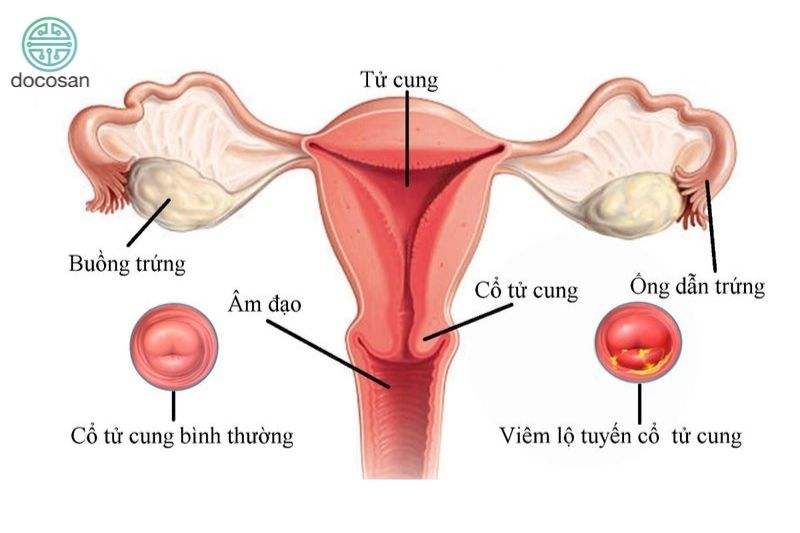 Huyết trắng vón cục bất thường cũng có thể là một biểu hiện của bệnh viêm lộ tuyến cổ tử cung. Đây là tình trạng các tuyến trong ống cổ tử cung phát triển xâm lấn ra phía ngoài gây tổn thương lành tính ở cổ tử cung và dẫn đến viêm nhiễm.
