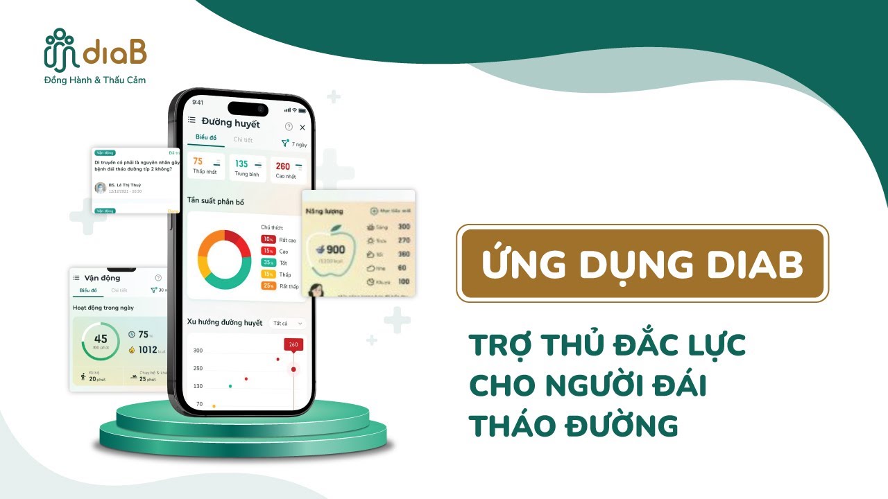 Diab: Được thiết kế đặc biệt cho người Việt Nam, Diab giúp theo dõi các chỉ số sức khỏe như đường huyết, huyết áp, cân nặng và cung cấp thực đơn dinh dưỡng cá nhân hóa. Ứng dụng còn kết nối với các bác sĩ và chuyên gia y tế để tư vấn.